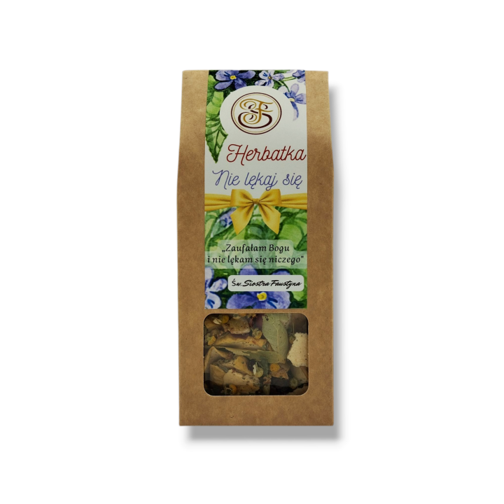 Herbatka Nie lękaj się to delikatna kompozycja suszonych owoców i aromatycznych ziół. Jabłko i banan wnoszą naturalną słodycz i miękką, owocową nutę, którą przełamuje wyrazisty akcent dzikiej róży. Całość dopełnia subtelny zapach melisy, rumianku i lipy – lekkich, roślinnych tonów, które tworzą harmonijną, łagodną mieszankę.